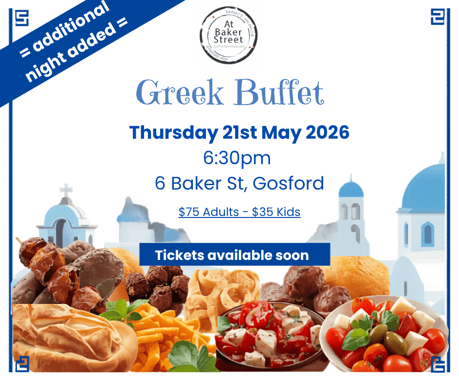 Join us At Baker Street for the love of Greek food. take on a Greek feast buffet emerese yourself with the flavours of Greece.